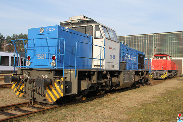 D'CFL Cargo 1581 an d' ex CFL Cargo 1507 zu Neustrelitz am Netinera Wierk. D'1581 ass den 19/01 do uewen ukomm fier eng HU. Sie gouf vun der BSBS (Braunschweiger Bahnservice) MY 1142 ex DSB vun Ehrang bis Neustrelitz geschleeft. (Photo: 19.1.2015 Christian Schmitz)
