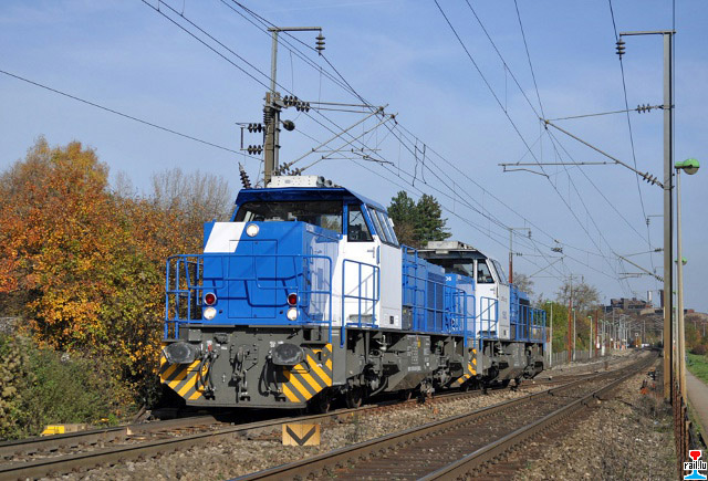 La nouvelle locomotive Diesel CFL cargo 1587 (92 80 1276 042-9 D-BUVL) à Apach (Photo: 31.10.2011 Séb Steiner)