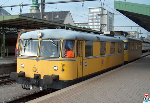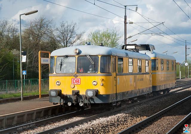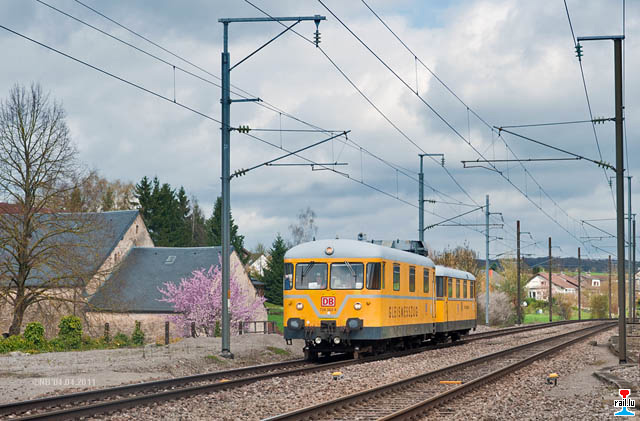 Der Gleismesszug der DB weilt vom 4. - 7. April 2011 in Luxemburg zu Überprüfung des Schienennetzes. Hier durchfährt er den Bahnhof Roodt/Syr aus Wasserbillig kommend. (Foto: 04.04.2011, ©Nico Berté)