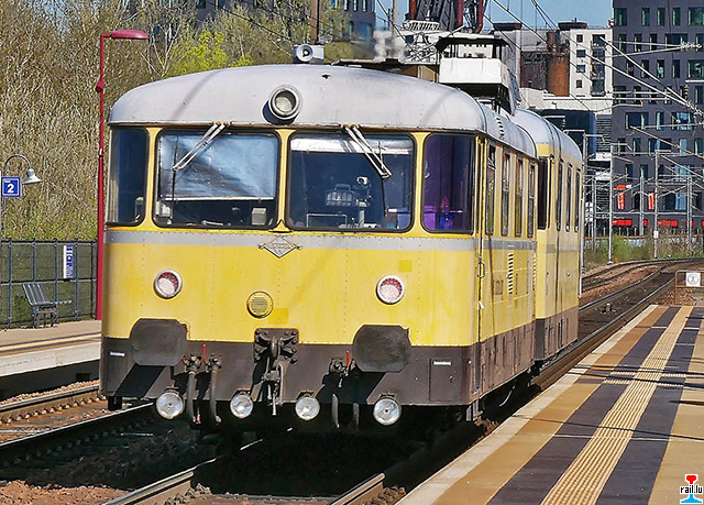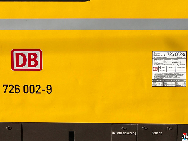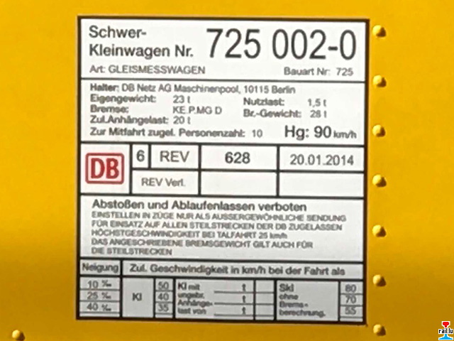 VT 726 002 ass nees ënnerwee fir d'Gleisgeometrie ze moossen: