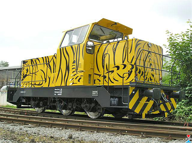 Henschel Werklok DHG 700 (N° 32752; 1987) der Firma Feinblechwerk Rasselstein GmbH in Neuwied im neuen Design als Tigerlok in Neuwied, bei der Firma Reuschling in Hattingen (Photos: 02.06.2006 Volker Roth)