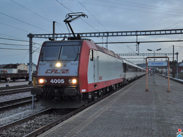 Parcours de rodage de la SNCB 1804 avec voitures - couchettes entre Kinkempois et Kinkempois, via Arel, Athus, Virton, Namur, ici à Athus (Photo: 3.10.2011 Yves Gillander)