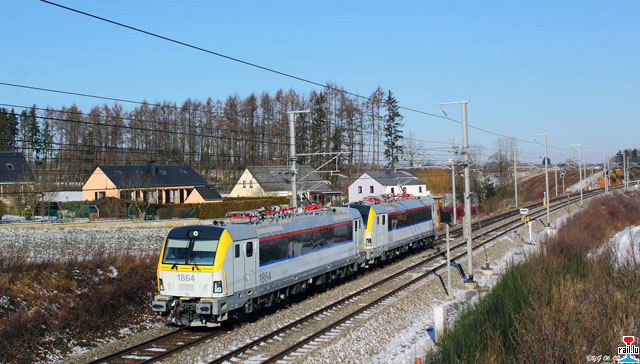 Parcours de rodage des locos SNCB 1838 et 1818 en UM, passage sur l'Athus-Meuse à Signeulx (Photos: 24.01.2012 Christophe Bourguignon)