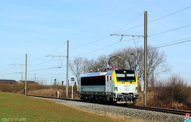 Rodagefahrt vun der SNCB 1851 de Moien op der Linn 167. Wéi ëmmer fueren se Kinkempois - Kinkempois via Rivage - Marloie - Arlon - Autelbas - Athus - Betrix - Dinant - Namur - Huy. (Photo: 17.1.2012 Yves Gillander)