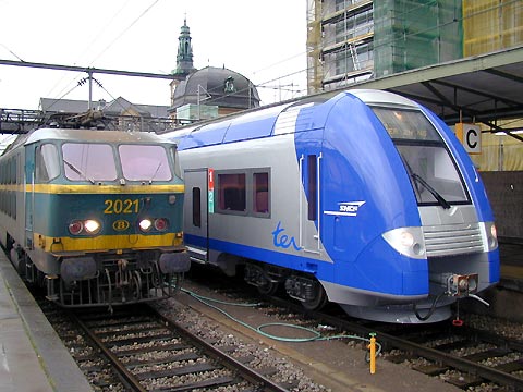 Locomotives SNCB 2127 (avec l´EC Vauban) et 2006 en Gare