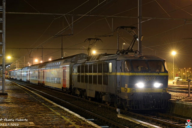 La SNCB 2003 à Arlon - D'SNCB 2003 virum 2127 zu Arel, iert se ob Bréissel gefuer ass. (Photo: 31.12.2013 Charly Huberty)
