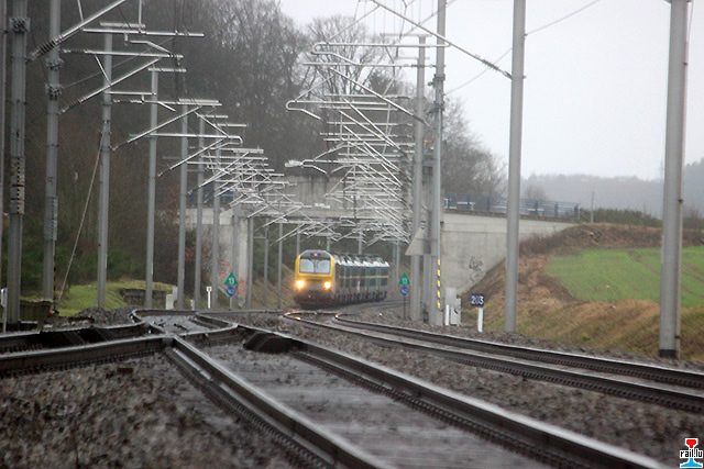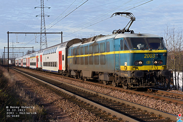 Den IC 2108 mat der d'SNCB 2003 zu Hollerëch bei der Arrivée an der Stad (Photo: 31.12.2013 Benny Huberty)