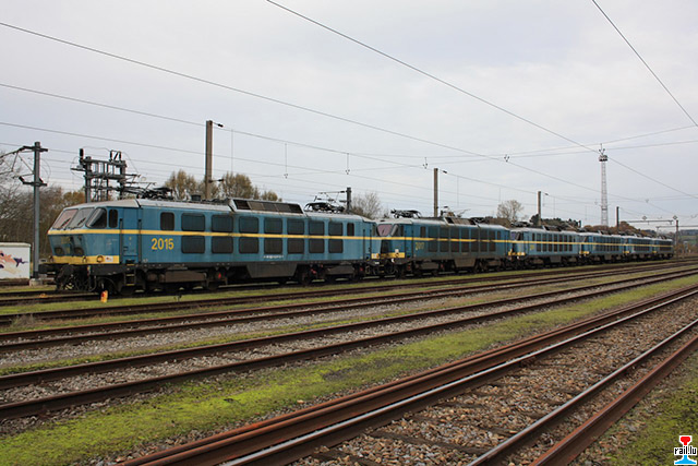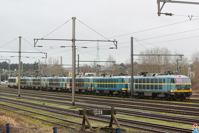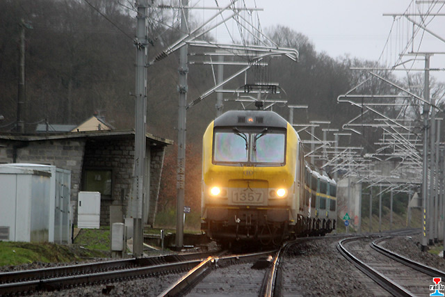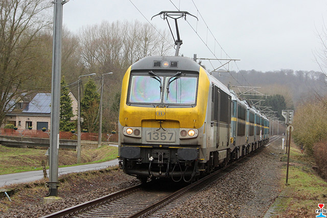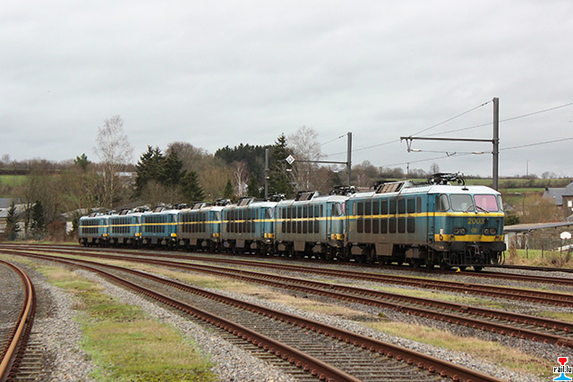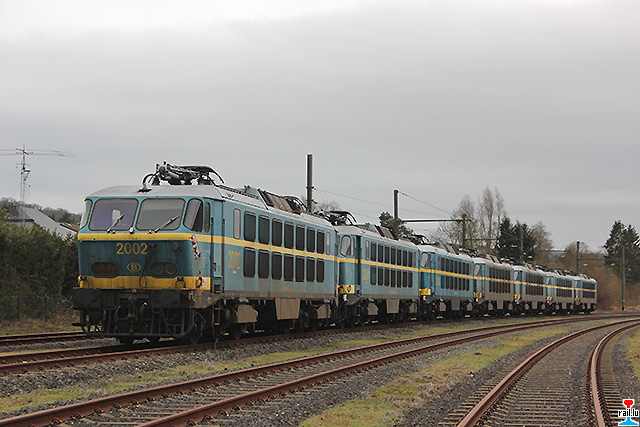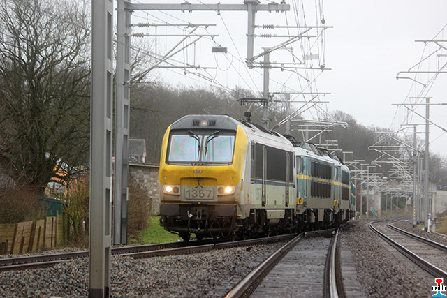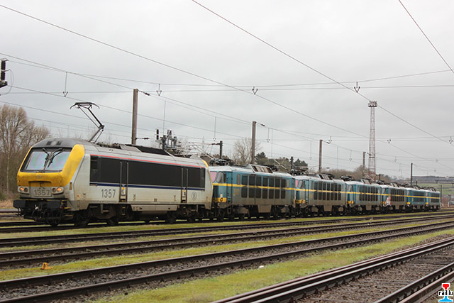 Transfert d'ex - SNCB 20 de Stockem vers Athus, via Autelbas - Messancy: SNCB 1357 avec les ex- SNCB 2003 + 2006 + 2009 + 2007 + 2024 + 2004 (Photos: 12.1. 2015 Dan Antony)