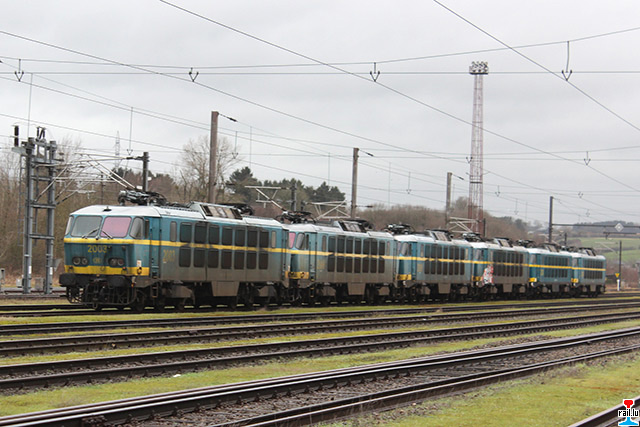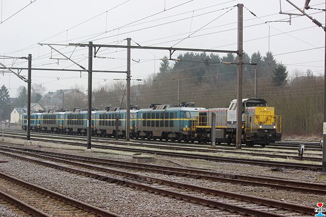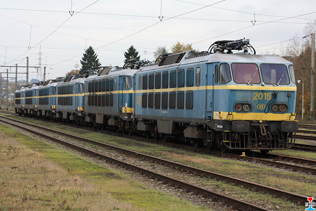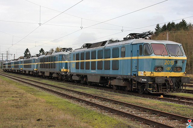 Locomotives électriques ex - SNCB 2015, 2017, 2016, 2011, 2008 et 2002 garées à Athus (Photo: 10.11.2014 David Arnould)