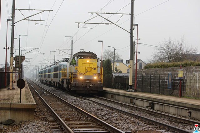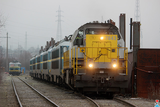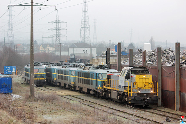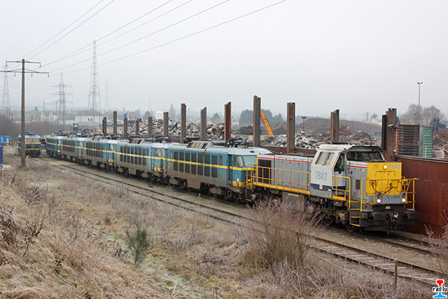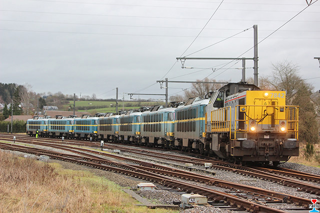 Transfert d'ex - SNCB 20 d' Athus à Aubange: SNCB 7843 avec les ex- SNCB 2003 + 2006 + 2009 + 2007 + 2024 (Photos: 19.1. 2015 Dan Antony)