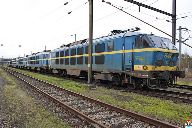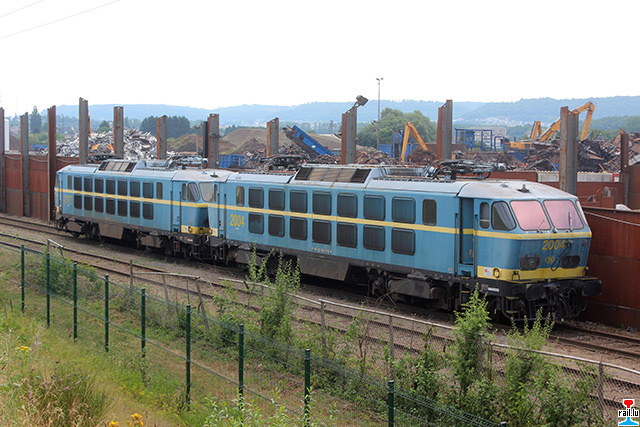 D'ex - SNCB 2002 an 2004 sin am Laaf vun dëser Woch op Aubange bei Ecore iwerfouert gin. Hei gesi mer se um Raccordement vun Ecore (Photos: 5.7. 2015 Dan Antony)