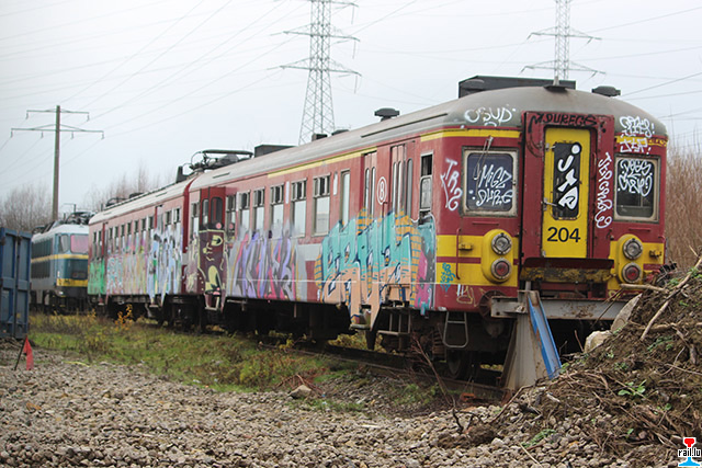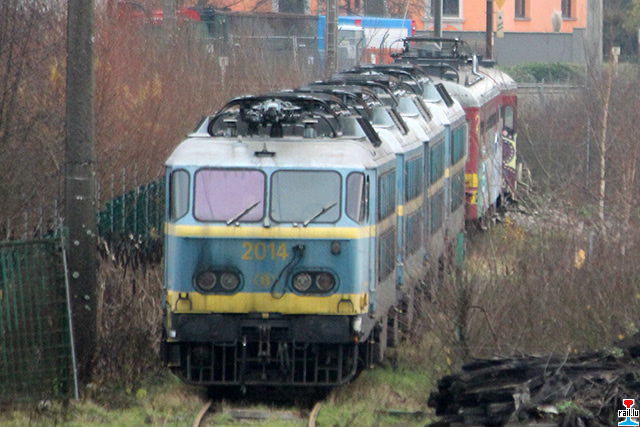En Freideg war erem en Transfer vun Athus bei den Ecore. 4 x 20 er sin dohinner bruet gin, an et waren daat d'Ex-SNCB 2023, 2018, 2025 an 2014. D'ex SNCB - Automotrice 204, déi am Ufank als Musées-Automotrice virgesi war, ass schlussendlëch och bei den Ecore bruet gin. Hei gesi mer daat ganzt Material beim Ecore (Photos: 13.12. 2015 Dan Antony)