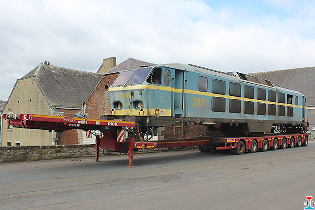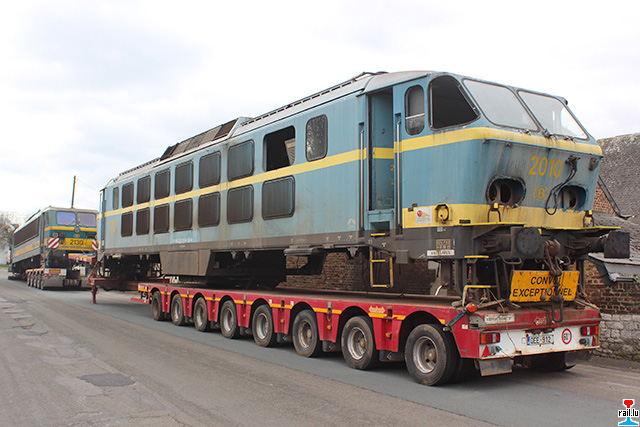 Les caisses des SNCB 2010 et 2130 sur remorques sur un parking à Flawinne (Photos: 20.3. 2016 Dan Antony)