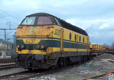 Locomotive diesel SNCB 6237 avec train de travaux SNCB à Bettembourg (Photos: