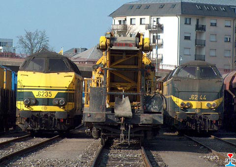 Locomotives diesel SNCB 6244 et 6237 à Bettembourg (Photo: 16.4.2004