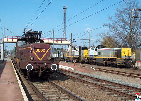 Locomotives CFL 3602 et SNCB 7728+7726 en gare