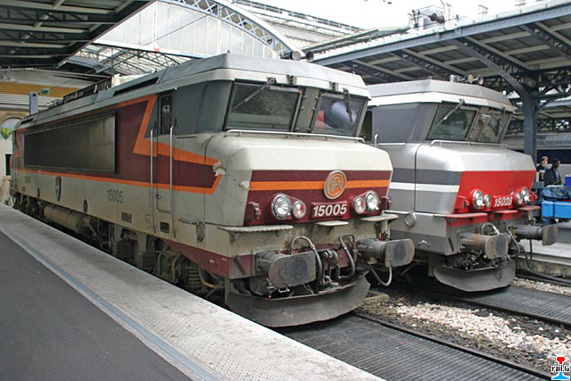 Locomotives électriques SNCF 15005 et 15028 en gare de Paris-Est (Photo: 26.6.2006 Mike Wohl)