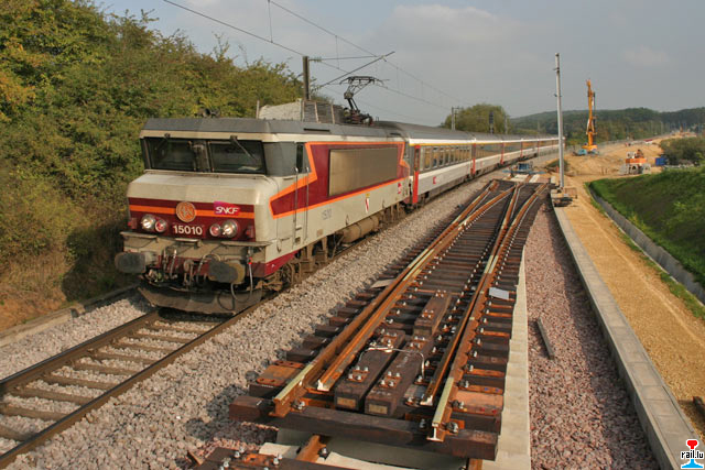 L'EC 97 Iris avec la locomotive SNCF 15010 dévié, suite à l'accident du 11.10.2006 à Zoufftgen, via Longuyon, ici à Bascharage - Biff (Photo: 13.10.2006 jmo)