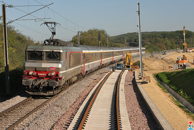 L'EC 97 Iris avec la locomotive SNCF 15060 dévié, suite à l'accident du 11.10.2006 à Zoufftgen, via Longuyon, ici à Bascharage - Biff (Photo: 16.10.2006 jmo)