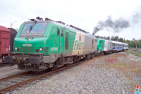 Locomotives SNCF BB 27089 et 27053 avec voiture d'essai,