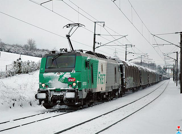 Locomotive SNCF 27030 avec un train de marchandises Hagondange - Esch-sur-Alzette à Noertzange (Photo: 3.3.2006 Mike Wohl)