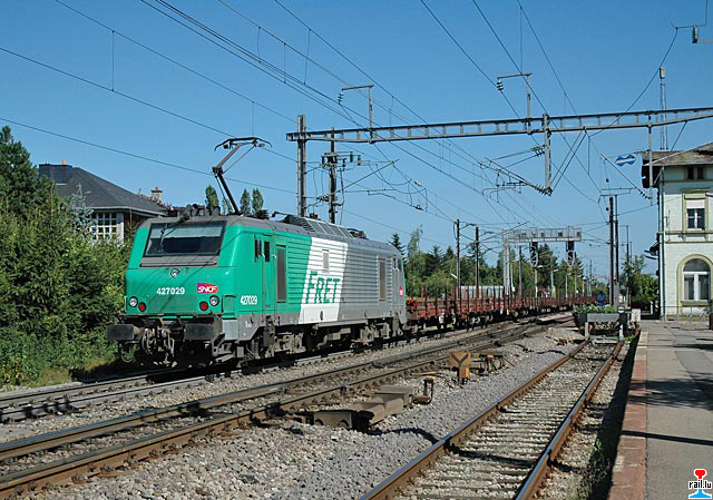 Locomotive SNCF 27029 avec un train de marchandises Hayange - Esch/Alzette à Noertzange (Photo: 8.9.2006 Mike Wohl)