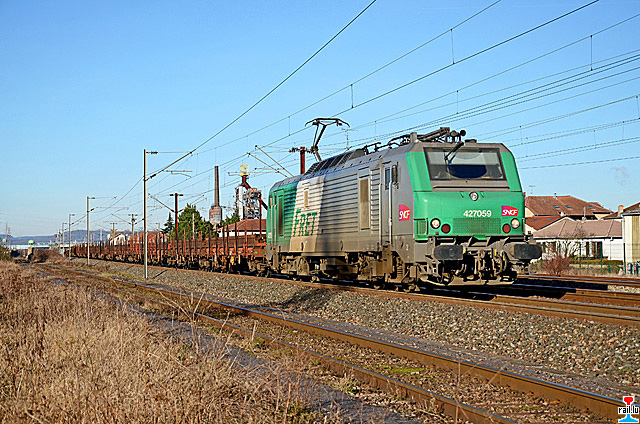 Un peu plus tard, la 27059 roule en direction d'Hagondange avec une lourde rame de brames. (Photo: 16.1.2012 Seb. Steiner)