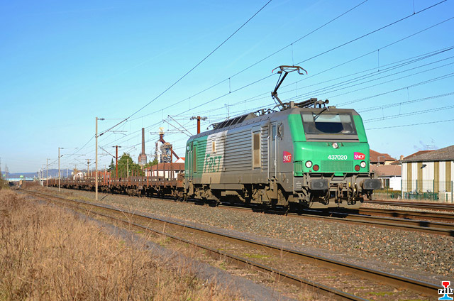 En provenance d'Apach, le train HGK 48294 passe à Uckange avec la 37020 en tête. Il s'agit ici d'un retour à vide en provenance de Nievenheim en Allemagne. Le train chargé circule le lundi et le vendredi matin vers 07H00. Il transporte de grosses brames d'aluminium. (Photo: 16.1.2012 Seb. Steiner)