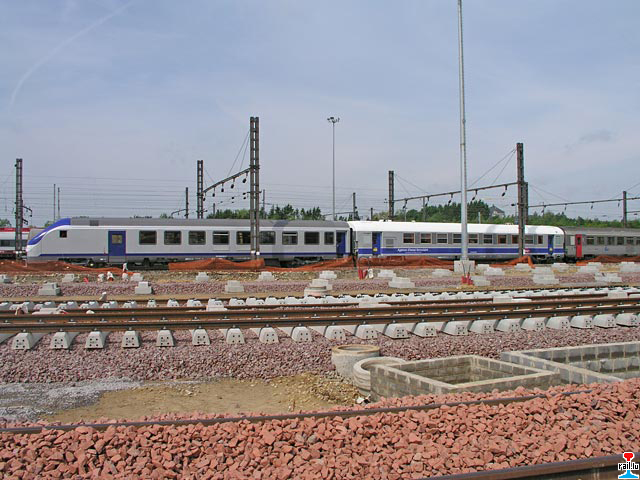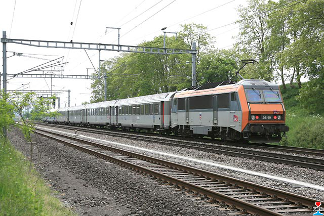 Essais avec la voiture-pilote SNCF B5uxh 50 87 80 - 97 121-6 (44 t; 200km/h; Dépôt Strasbourg) avec la locomotive SNCF 26149 réversible, ici au Triage de Luxembourg (Photos: 10.5.2007 jmo)