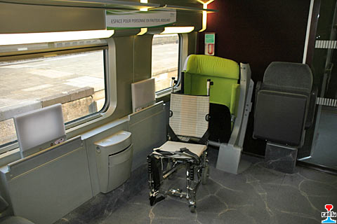 Espace pour personne en fauteuil roulant (Photo: 7.10.2005 jmo)