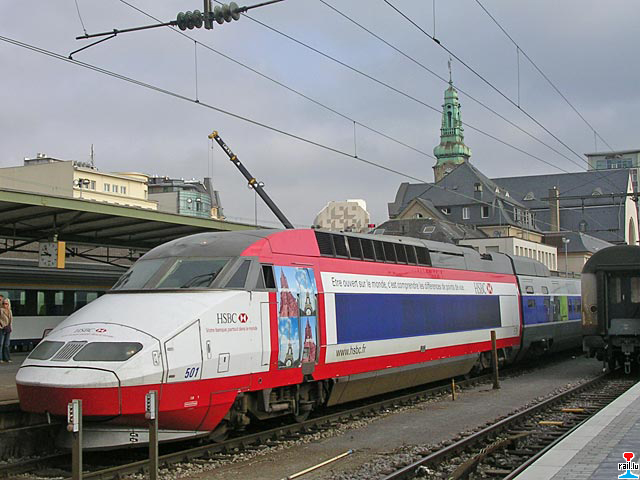 TGV Est Européen 501 avec publicité HSBC, en gare de Luxembourg (Photos: 27.8.2007 Michel Dondelinger)