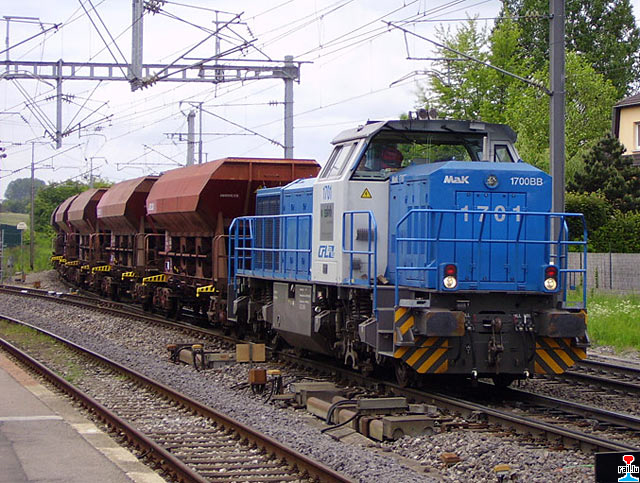 CFL 1701 (Vossloh, G 1700BB, Fabriknummer: 1001212, 2003) avec train de marchandises Belval - Lorentzweiler à Noertzange (Photo: 2.6.2006 Mike Wohl)