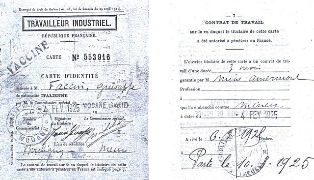 délivré le 4.2.1925 à M. Faccin Guiseppe, sur le vu duquel