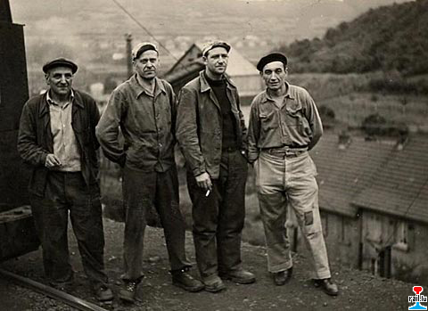 Bruno Talotti avec 3 collègues à la Mine Burbach à Algrange (Photo collection: