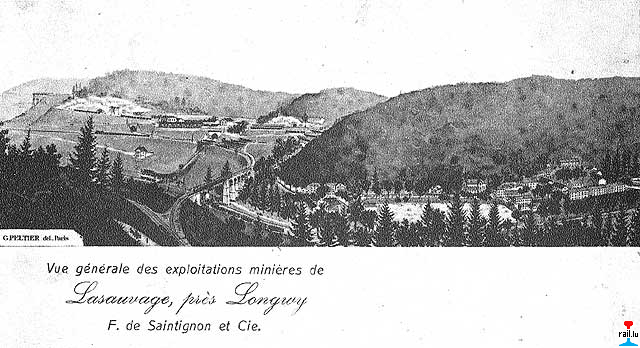 Pont et viaduc minier à Lasauvage, au-dessus de la ligne du Chemin de fer de l'Est - PN - vers 1905 (Carte postale: Librairie A. Naudin, éditeur, Longuyon; Collection: jmo)