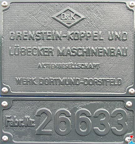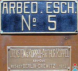 Plaque de construction sur la locomotive à vapeur ex-ARBED-Esch No 5 Orenstein & Koppel - Arthur Koppel (Photo: jmo) |