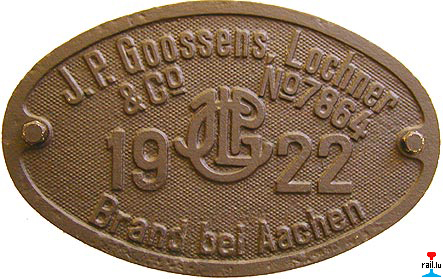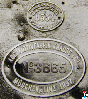 Plaque de construction sur la locomotive à vapeur "Krauss & Cie" No 3665 de 1897 (Photo: Jean Dahlem) |