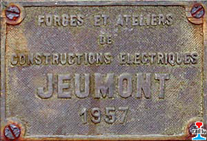 Plaque de la locomotive de minière électrique No 19 à Belvaux Forges et Ateliers de constructions électriques Jeumont 1957 (Photo: jmo) |