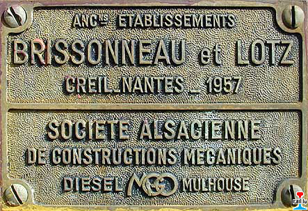 Plaque de la locomotive CFL 909 ANCns ETABLISSEMENTS BRISSONNEAU et LOTZ (Photo: jmo) |