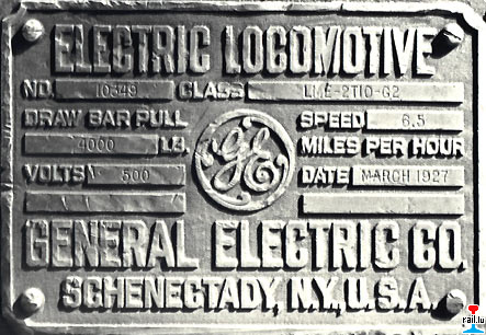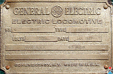 Plaque sur une locomotive électrique minière General Electric (Photo: jmo) |