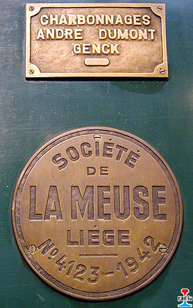 Plaque de construction de la locomotive à vapeur AMTF No AD 07 Charbonnage André Dumont Genck Société de La Meuse (Photo: jmo) |
