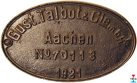 Plaque de construction de la locomotive à vapeur CFL 5518 WIENER LOKOMOTIVFABRIK-A.-G. (Photo: jmo) |