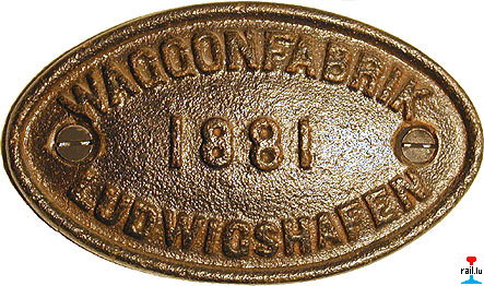 Plaque de construction d'un wagon à voie étroite Waggonfabrik Ludwigshafen 1881 (Photo: jmo) |