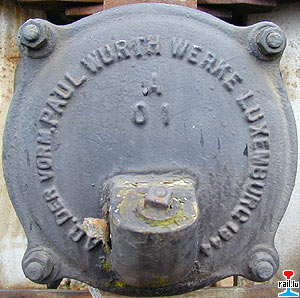 Plaque de construction sur locomotive à voie étroite à Niederpallen Société de La Meuse; Liège (Photo: jmo) |