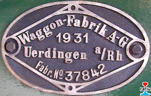 Plaque de construction sur un wagon de l'ARBED 105921P (Photo: jmo) |