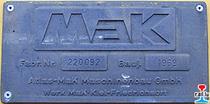 sur la locotracteur ARBED 102 Mak Fabr.Nr. 220092 Bauj. 1969 Atlas-MaK Maschinenbau GmbH Werk MaK - Kiel-Friedrichsort (Photo: jmo) |