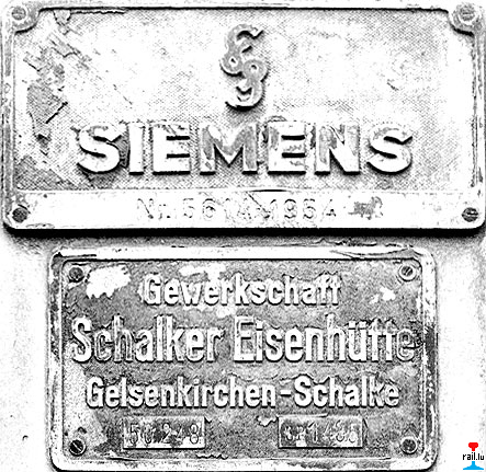 Plaque de construction de la locomotive électrique ARBED 420 / ex Hadir No 2 Siemens No 5614 1954 Gewerkschaft Schalker Eisenhütte Gelsenkirchen-Schalke No 50248 (Photo: Richard A. Bowen) |