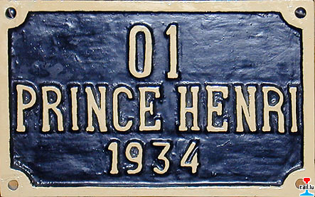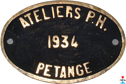 Plaque de l'autorail PH No 01 Prince Henri construit par l'Atelier
