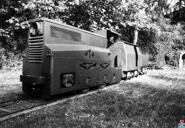 | DSK-Deutsche Steinkohle AG - Erlebnisbergwerk Velsen, 66352 Großrosseln 11.07.2004-info/ pz/ Das Erlebnisbergwerk Velsen kann nach tel. Absprache besichtigt werden. In der Ausstellung befindet sich auch eine Lokomotive. AEG FNr. 7853/1960 {Bartz 1592}, Typ ZD 2/2 Schaltradlok, Bo-akku, 665 mm, 7 t, 24,4 kW, 4 m/s, Höchstzulässige Anhängerlast: 40 Leerwagen, 15 Kohlenwagen, 9 Bergewagen neu geliefert an Saarbergwerke /.... DSK-Deutsche Steinkohle AG, Erlebnisbergwerk Velsen, Großrosseln (07.2004 vh) |
