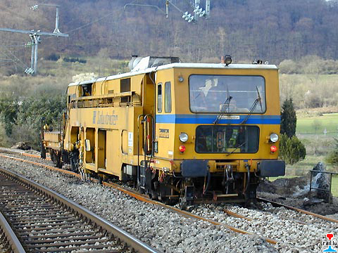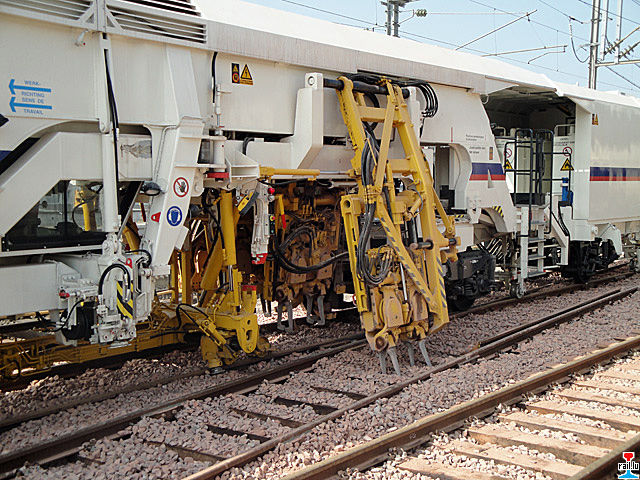 Chantier Bettembourg: Nom Ballastage koum d'Weichebourreuse vun der ETF an den Asaatz. (Photo: 6.4.2012 René Birgen)